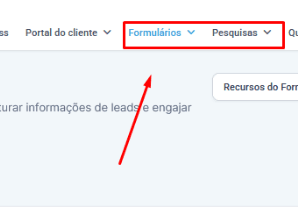 - Dentro de "Sites", selecione "Formulários" ou "Pesquisas".